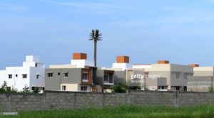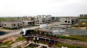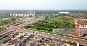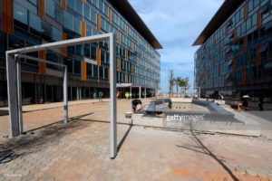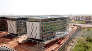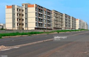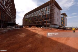 An aerial view taken on October 17, 2018 shows residential buildings on a construction site for the project of new city in Diamniadio, 40 kms on the outskirts of Dakar. (Photo by EMILIE IOB / AFP) (Photo credit should read EMILIE IOB/AFP/Getty Images)