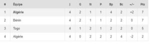 Avec cette victoire le Togo compte 5 points est n’est plus qu’à deux unités de l’Algérie qui se déplace à Lomé dans un mois… Si les verts perdent au Togo, ce sont les Eperviers qui passeront devant au classement et l’Algérie sera troisième est donc non qualifiée à un match de la fin des éliminatoires…