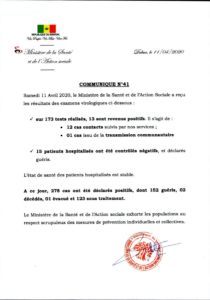 Coronavirus au Sénégal : 13 nouveaux cas positifs ActualitésSanté et Bien-être By Khadim On Avr 11, 2020 0 30 Partage https://www.facebook.com/santegouvsenegal/videos/672270510006478/?t=89 13 cas positifscoronavirus 0 30 Partage