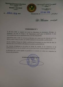 La Mauritanie vient d’enregistrer son premier cas de coronavirus. Il s’agit d’un mauritanien qui était en Europe.