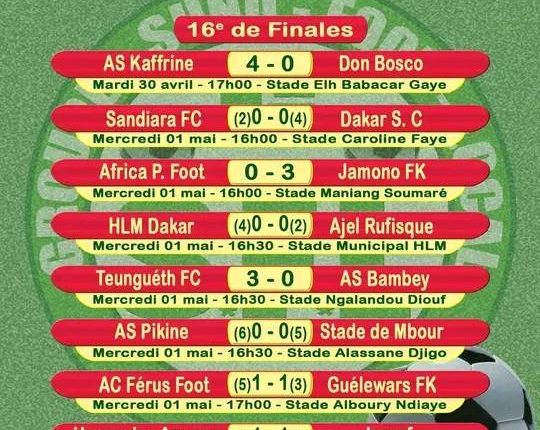 Ce mercredi, le Jaraaf, détenteur du titre, a dû livrer une bataille intense pour se défaire de Haayo des Agnam à Matam. Après un match nul serré 1-1, le club de la médina a finalement assuré sa qualification aux tirs au but, l’emportant avec un score final de 5-4. Teungueth FC, leader incontesté de la Ligue 1, a confirmé sa suprématie en s’imposant sans difficulté 3-0 contre l’AS Bambey. En revanche, Dakar Sacré-Cœur a éprouvé quelques difficultés avant de finalement remporter la victoire contre la modeste équipe de Sandiara FC avec un score de 4-2 aux tirs au but, après un match nul 0-0. Le duel entre les équipes de Ligue 1 a tenu toutes ses promesses, avec l’AS Pikine éliminant le Stade de Mbour aux tirs au but après un match nul 0-0 (6-5 aux tirs au but).