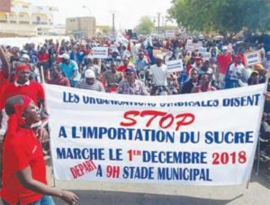 Les travailleurs de la Compagnie Sucrière Sénégalaise (CSS), regroupés dans les neuf organisations syndicales présentes au sein de l’entreprise, ont battu le macadam ce samedi 1er décembre dans la commune de Richard-Toll pour protester contre l’autorisation d’importations de sucre accordée à des membres de l’Unacois. Une situation qu’ils tiennent pour responsable le Ministre du Commerce Alioune Sarr, auteur, selon eux, de cette autorisation qui serait une grande menace pour leur entreprise.