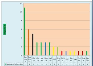 Si le Cameroun, la Cote d’ivoire et le Ghana sont sur le podium, d’autres nations ont célébré au moins une fois un des leurs ayant remporté ce titre individuel. Il s’agit du Mali, de la Guinée, de la RDC, du Congo, du Sénégal, du Gabon, du Maroc, du Togo, de la Tunisie, de l’Algérie, de l’Egypte, de la Zambie, du Libéria et du Nigéria.