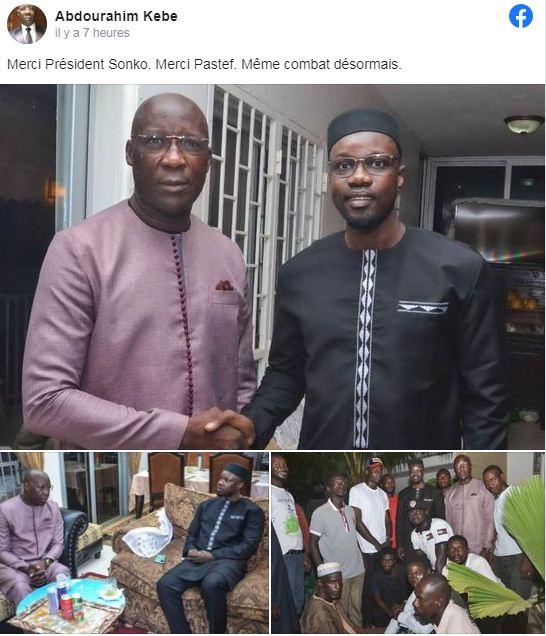Sur sa page Facebook le colonel de l’armée sénégalaise à la retraite, Abdourahim Kébé a annoncé sa collaboration avec le leader de Pastef de Ousmane Sonko. « Merci Président Sonko. Merci Pastef. Même combat désormais » a-t-il écrit sur le réseau social.