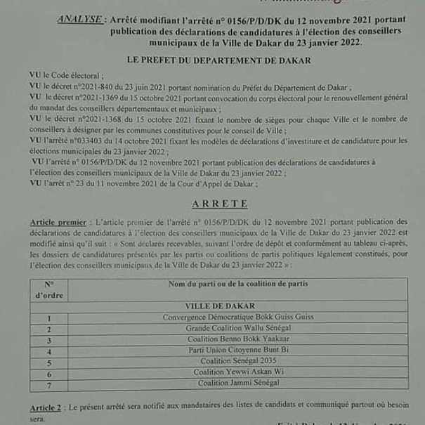 Dans un communiqué de la coalition Wallu Sénégal, « Le Président Doudou Wade candidat de la grande coalition Wallu-Sénégal de la ville de DAKAR procédera au lancement de son programme ce Mardi 11 Janvier 2022 à partir de 15h30 sur la VDN en face du siège du PDS. »