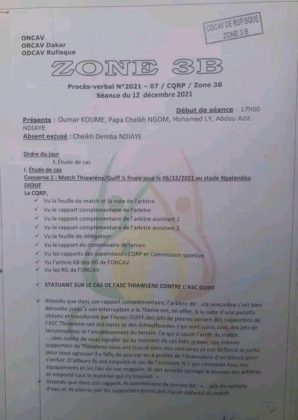 ASC Thiawlene a été lourdement sanctionné par l’ONCAV suite à l’interruption du match de demi-finale contre Guiff à la suite d’un penalty sifflé en faveur de l’adversaire. Les supporters de Thiawlene s’étaient par la suite farouchement opposés aux forces de l’ordre et ont vandalisé le stade Ngalandou Diouf.