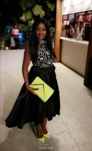Métamorphosée après son accouchement, la superbe Ky Aidara est toujours rayonnante et ravissante. La femme de l’animateur, Pape cheikh Diallo est toujours radieuse. Très sublime, elle s’engouffre dans une élégante jupe noir blanc, qu’elle met en valeur avec une magnifique pochette et des chaussures vertes.