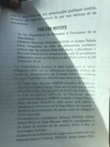 Tout est parti d’une interview faite par lesdits sites d’information avec un artise plasticien du nom de Pape Moussa Mbaye. Ce dernier affirme avoir été grugé par le patron du Mdes qui ne lui a pas encore payé sa commande de 8 tableaux. Une vaine tentative de chantage selon le sieur Diop qui se dit victime de diffamation publique.