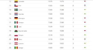 La Belgique suivie de la France et du Brésil dominent le football au plan mondial.
