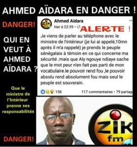 « Que le ministre de l’Intérieur, chargé de la Sécurité publique, Aly Ngouye Ndiaye, prenne ses responsabilités ! De sérieuses menaces pèsent sur la sécurité physique de l’animateur de Zik-Fm et Sen-Tv. Amnesty internationale (Seydi Gassama) la Société civile (professeur Babacar Guéye, Alioune Tine, Dr Cheikh Guèye ENDA-Tiers-monde…), merci de faire entendre vos voix, pour que l’État cesse de prendre cette grave affaire à la légère! Au besoin, saisissez la présidente de la délégation de l’Union européenne, Irène Mingasson, mandatée par la Communauté internationale pour une mission d’observation de cette Présidentielle lourde d’incertitudes.