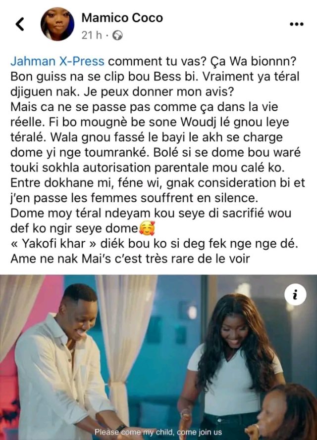 Dans cette chanson, Jahman qui rend hommage à sa femme courageuse qui, malgré les défis économiques et les aléas de la vie conjugale, lui est restée un soutien indéfectible. Partageant sa joie avec sa femme, il lui dit «de baraque à château, de car rapide à 4×4…yako fi khar * tu as été patiente».